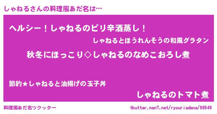 | 意味不明あだ名 | 『自称しゃねる』『しいたけ科しゃねる属』 |
