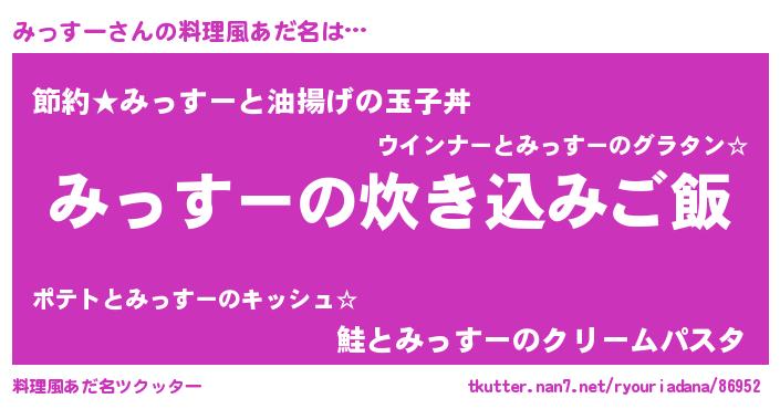 | 胡散臭い通販商品みたいなあだ名 | 『億万長者になれる霊験あらたかなお札…その名も「みっすー」』 |