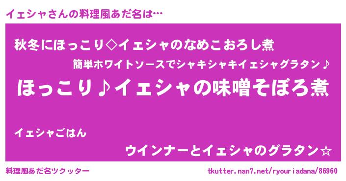 | 男性向けラノベタイトル風あだ名 | 『イェシャの憂鬱』『イェシャスレイヤー』 |