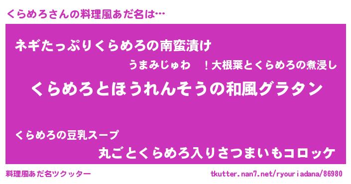 | 意味不明あだ名 | 『ニラ科くらめろ属』『ペロリンくらめろ』 |