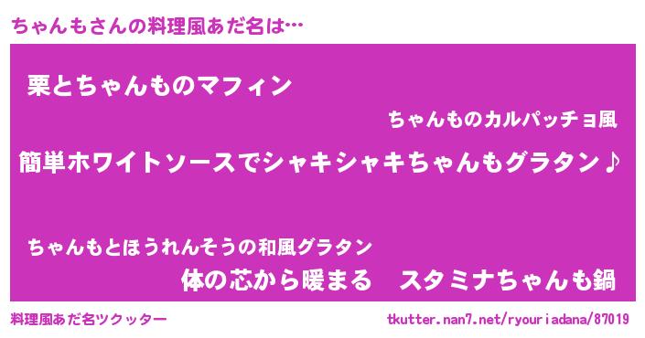 | 男性向けラノベタイトル風あだ名 | 『ちゃんもの嫁は女の子じゃないと思った?』 |
