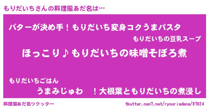 | ヒーロー風カッコイイあだ名 | 『スーパーモリダイチ』『黄金騎士モリ』 |