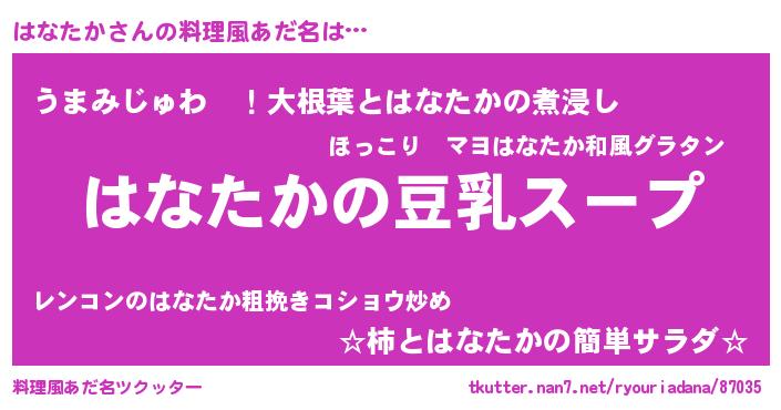 | ヒーロー風カッコイイあだ名 | 『黄金騎士ハナ』『ウルトラはなたかマン』 |
