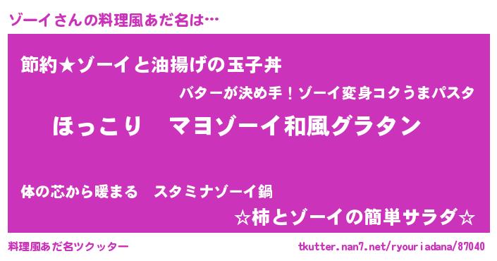 | ポケモン風あだ名 | 『ゾーーイ』『ゾーチュウ』 |
