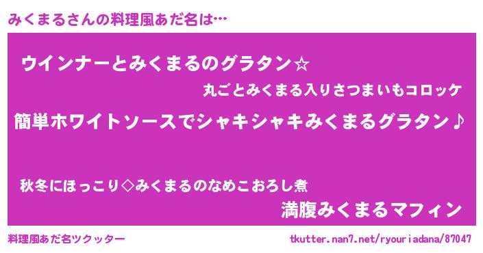 | 男性向けラノベタイトル風あだ名 | 『みくまるの嫁は女の子じゃないと思った?』 |