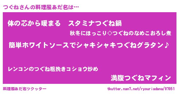 | 胡散臭い通販商品みたいなあだ名 | 『全米が絶賛したサプリメント…その名も「つぐね」』 |