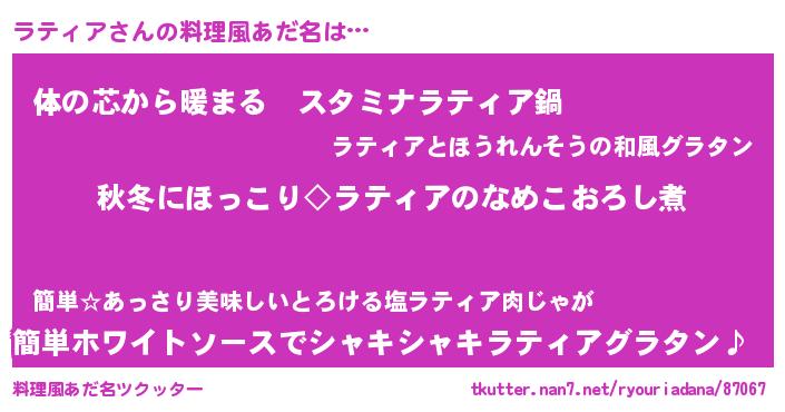 | ヘコむあだ名 | 『なまこ酢』『ラテっ子』『ラテにー』 |