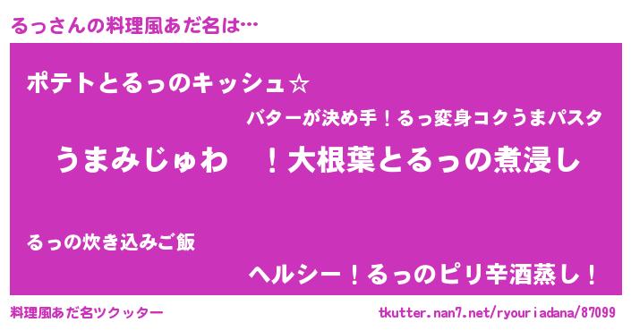 | 女子向けラノベタイトル風あだ名 | 『るっの婚約者』『るっの卵を拾いまして』 |