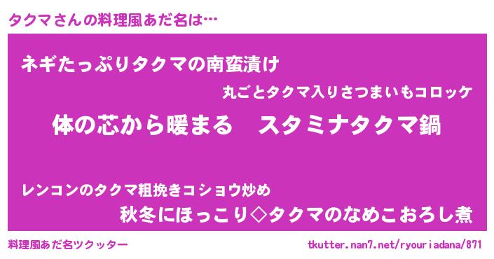 | 胡散臭い通販商品みたいなあだ名 | 『幸せが訪れる高級そうな皿…その名も「タクマ」』 |