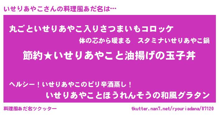 | ヒーロー風カッコイイあだ名 | 『スーパーイセリアヤコ』『仮面イセダー』 |