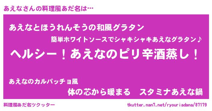 | ヘコむあだ名 | 『なまこ酢』『あえを』『あえにゅー』 |