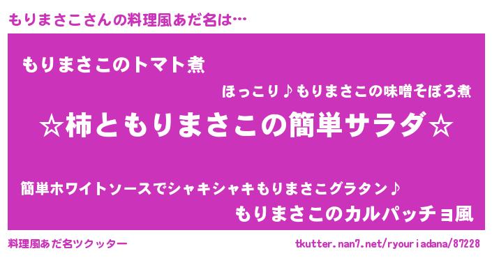 | 男性向けラノベタイトル風あだ名 | 『緋弾のモリマサコ』『もりまさこの憂鬱』 |