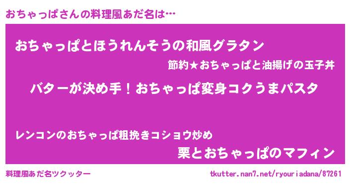 | 男性向けラノベタイトル風あだ名 | 『ノーゲーム・ノーオチャッパ』 |