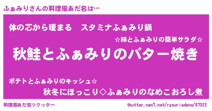 | 意味不明あだ名 | 『永久保存ふぁみり』『自称ふぁみり』 |