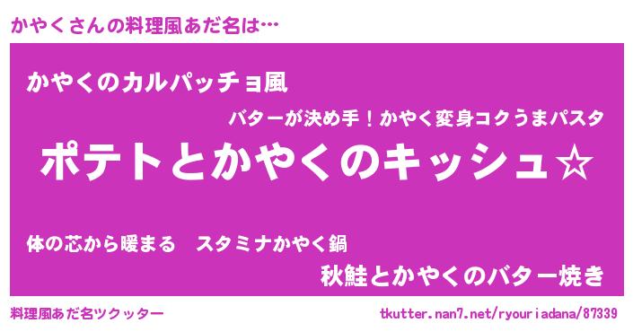 | ピコ太郎風あだ名 | 『カヤ四郎』『ピコカ郎』『カカ太郎』 |