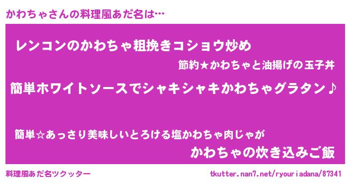 | 女子向けラノベタイトル風あだ名 | 『かわちゃ様がみてる』 |