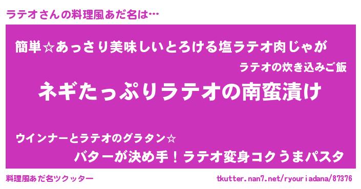 | ファンタジー風あだ名 | 『ラテフェル』『ラテディッシュ』 |