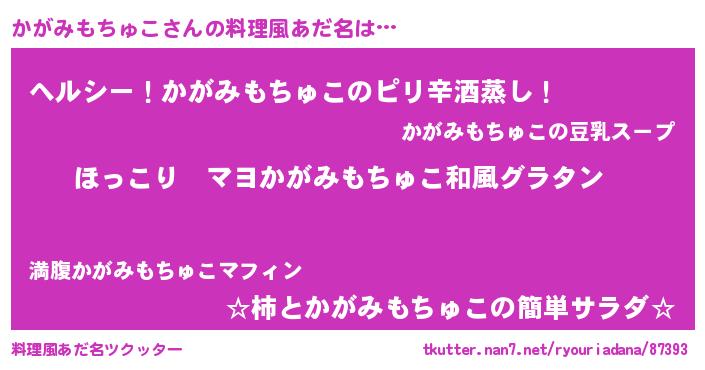 | ヘコむあだ名 | 『かがぷりん』『かがみもちゅこ(苦笑)』 |