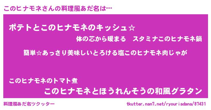 | 欧米人風あだ名 | 『ダルビッシュこのヒナモネ』 |