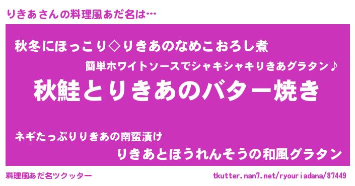 | 胡散臭い通販商品みたいなあだ名 | 『来世でも幸せになれる健康食品…その名も「りきあ」』 |