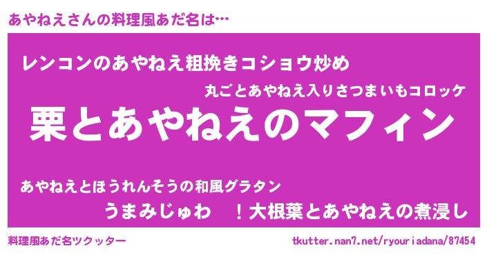 | ファンタジー風あだ名 | 『ゼアヤトゥ』『エターナルアヤネエー』 |