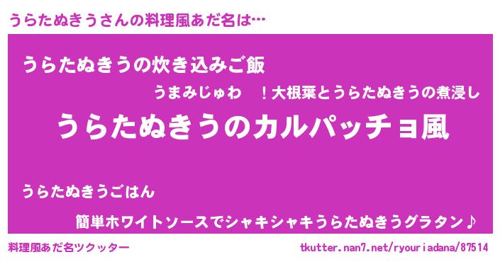 | 意味不明あだ名 | 『住所不定無職うらたぬきう(89歳)』 |