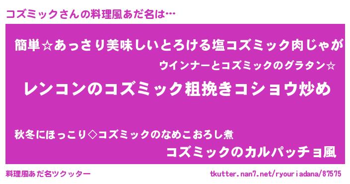 | 女子向けラノベタイトル風あだ名 | 『コズミックなんてお断りですっ。』 |