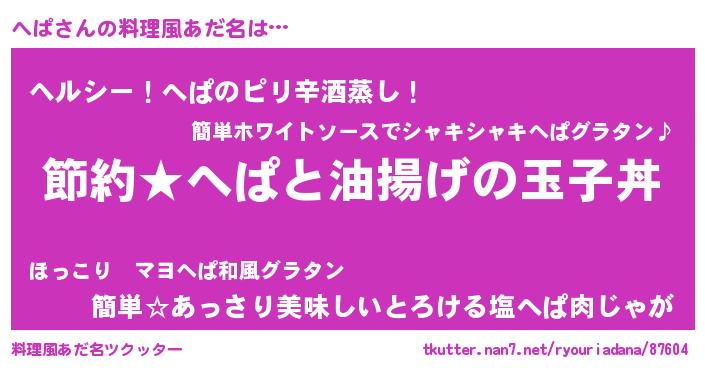 | 意味不明あだ名 | 『ペロリンへぱ』『自称へぱ』 |