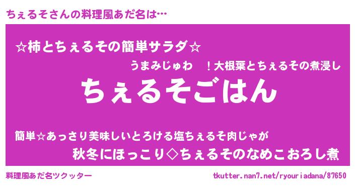 | 意味不明あだ名 | 『なめこ科ちぇるそ属』『自称ちぇるそ』 |
