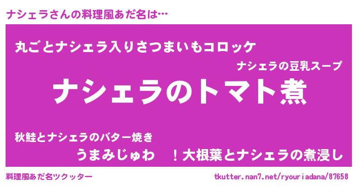 | 男性向けラノベタイトル風あだ名 | 『おまえをオタクにしてやるから、俺をナシェラにしてくれ! 』 |