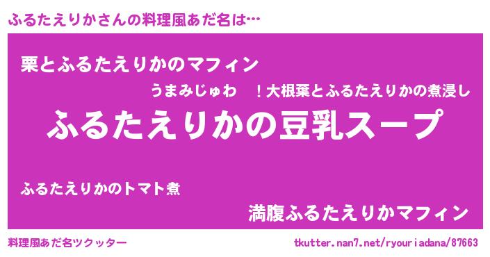 | ポケモン風あだ名 | 『ヒフルタエリカ』『フルゴンZ』 |