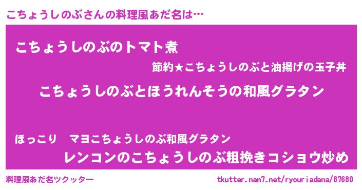 | 女子向けラノベタイトル風あだ名 | 『こちょうしのぶの玉の輿計画!』 |