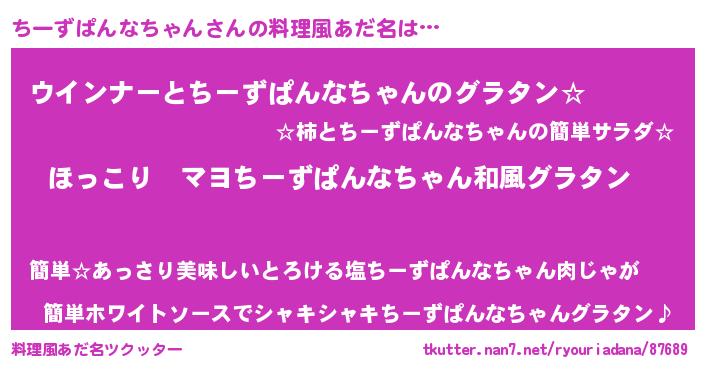 | 意味不明あだ名 | 『住所不定無職ちーずぱんなちゃん(71歳)』 |