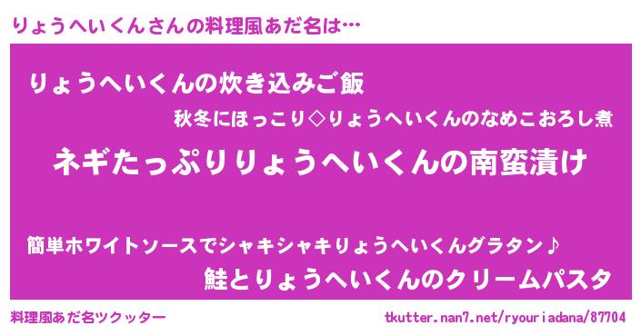 | 男性向けラノベタイトル風あだ名 | 『リョウヘイクンアートオンライン』 |