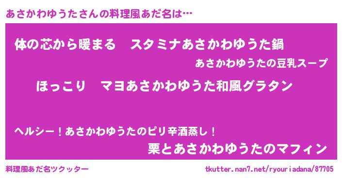 | 意味不明あだ名 | 『住所不定無職あさかわゆうた(81歳)』 |