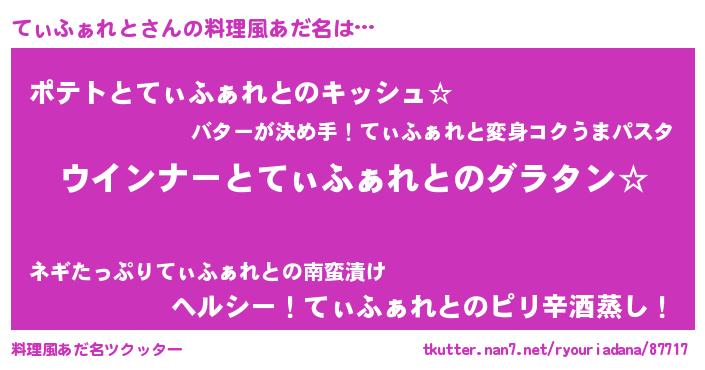 | 意味不明あだ名 | 『てぃふぁれとフォーエバー』 |