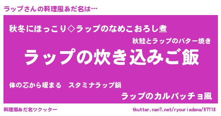 | 男性向けラノベタイトル風あだ名 | 『うちのラップが世界を掌握している!』 |