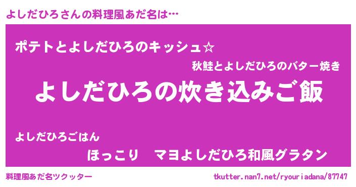 | ヘコむあだ名 | 『よしお』『よしだひろ(遠い目)』 |