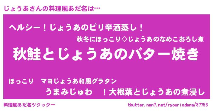 | 意味不明あだ名 | 『永久保存じょうあ』『自称じょうあ』 |