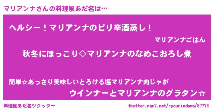 | 意味不明あだ名 | 『自称マリアンナ』『永久保存マリアンナ』 |