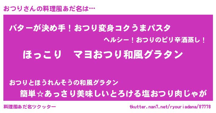 | ヘコむあだ名 | 『おつり(笑)』『なまこ酢』『おつを』 |