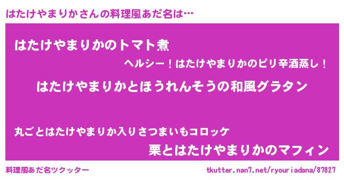 | ヘコむあだ名 | 『はたを』『はたけやまりか(遠い目)』 |