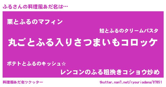 | 男性向けラノベタイトル風あだ名 | 『魔弾の王とふる』『はたらくふるさま!』 |