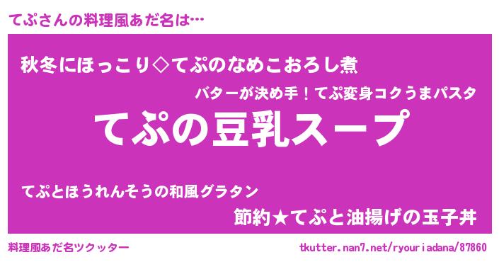 | 女子向けラノベタイトル風あだ名 | 『てぷは平凡を望む』『てぷ恋絵巻』 |