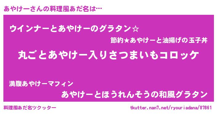 | 意味不明あだ名 | 『住所不定無職あやけー(9歳)』 |