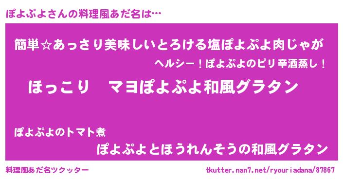 | 意味不明あだ名 | 『住所不定無職ぽよぷよ(8歳)』 |