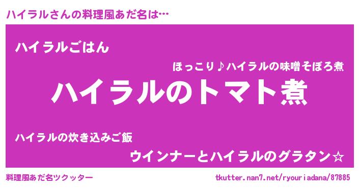 | 女子向けラノベタイトル風あだ名 | 『ハイラル夫妻のなれそめ』 |