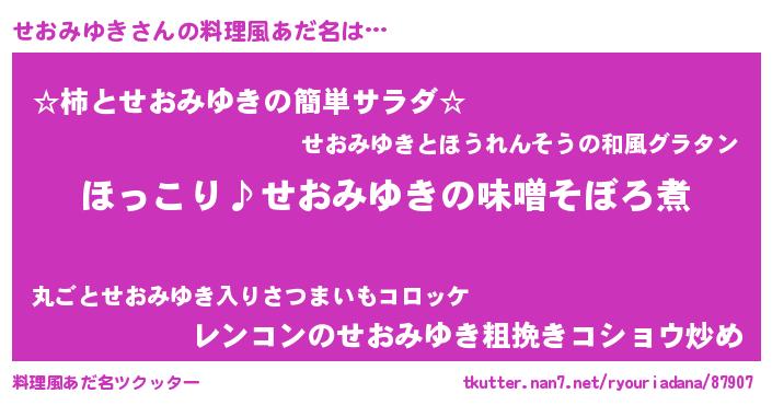 | ヘコむあだ名 | 『せおもー』『せおみゆき(苦笑)』 |