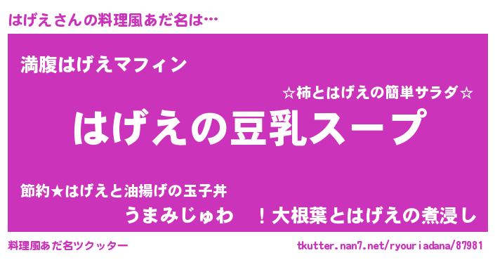 | 胡散臭い通販商品みたいなあだ名 | 『信頼と実績のサプリメント…その名も「はげえ」』 |