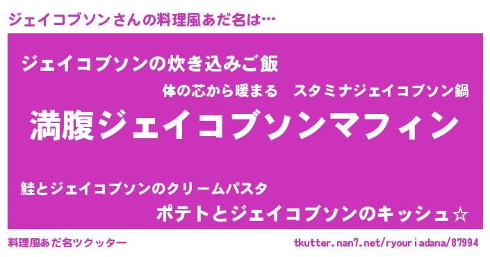 | 意味不明あだ名 | 『永久保存ジェイコブソン』 |